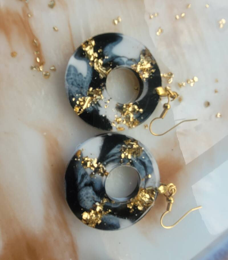 Résine coulée à la main avec inclusions selon le modèle (paillettes, fleurs, feuille dorée, etc.).