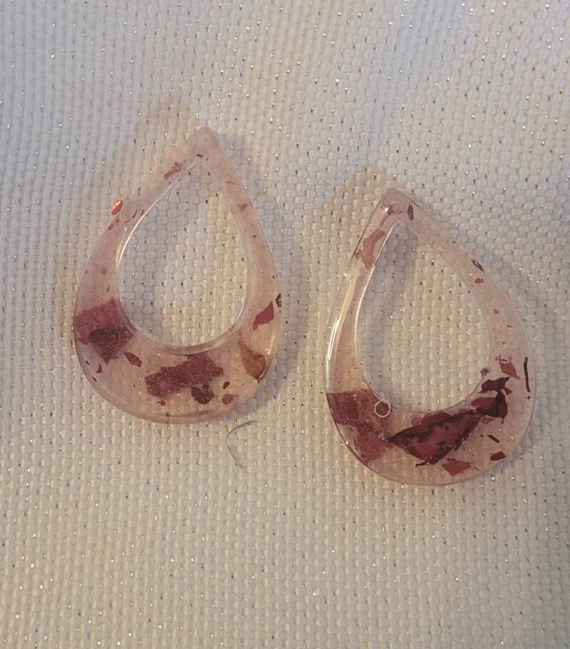 Résine coulée à la main avec inclusions selon le modèle (paillettes, fleurs, feuille dorée, etc.).
