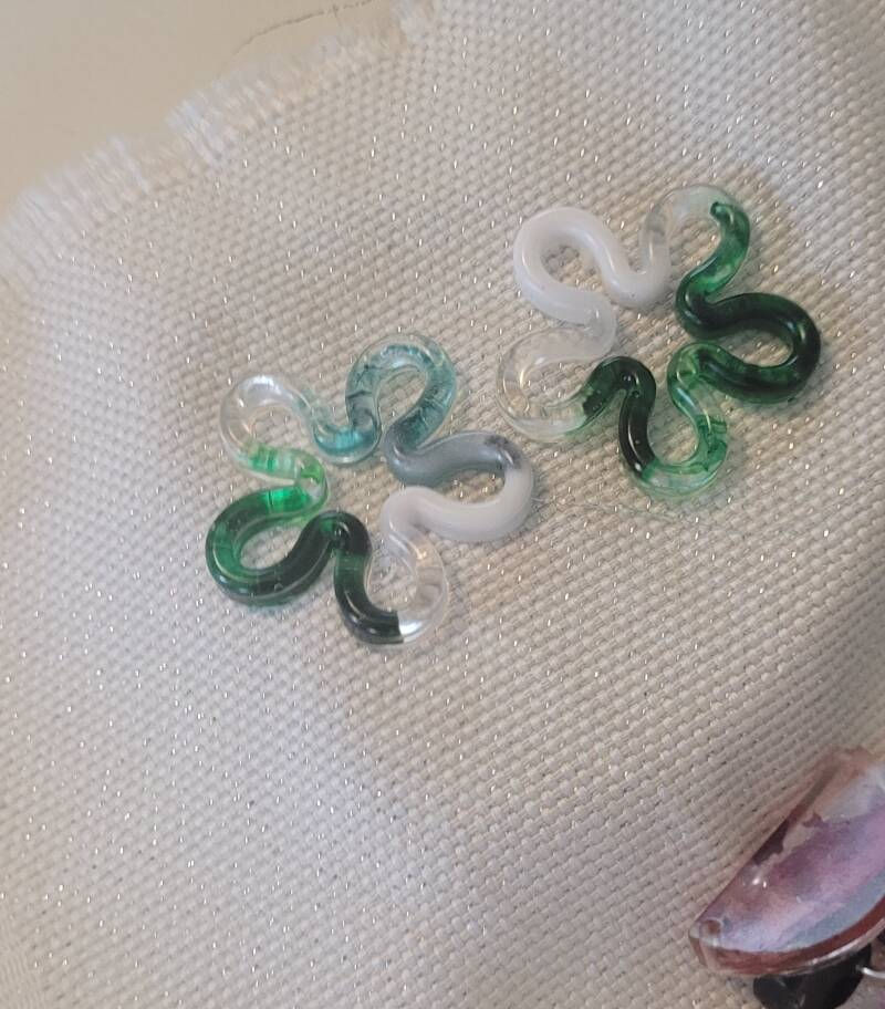 La disposition des couleurs/inclusions peut varier légèrement par rapport aux photos : chaque paire est unique, c’est tout le charme de l’artisanal.